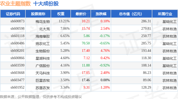 农业主题(000122)指数十大成份股详情如下: