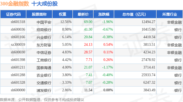 300金融(000914)指数十大成份股详情如下: