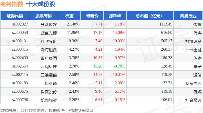 商务指数(399242)十大成份股详情如下: