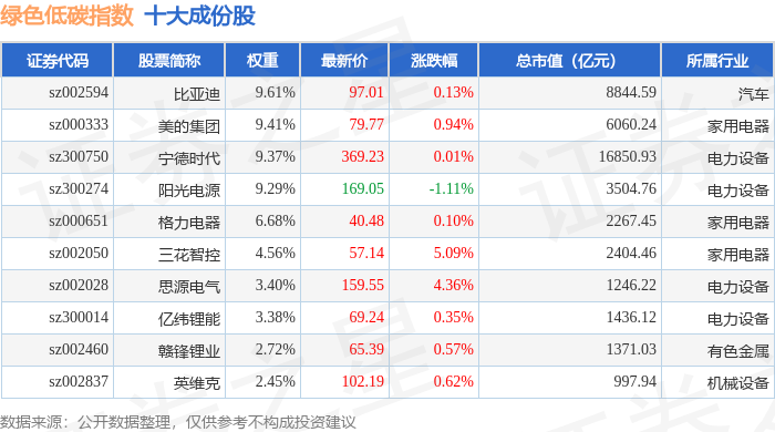 绿色低碳(399258)指数十大成份股详情如下: