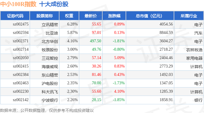 证券之星消息,1月9日,中小100R(399333)指数报收于10583.12点,涨1.26%,成交2238.02亿元,换手率2.97%。当日该指数成份股中,上涨的有79家,光启技术以10.01%的涨幅领涨,下跌的有20家,晶澳科技以2.64%的跌幅领跌。
