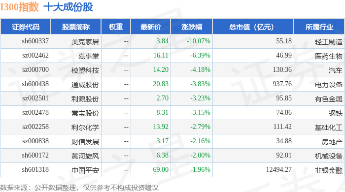 I300(399416)指数十大成份股详情如下: