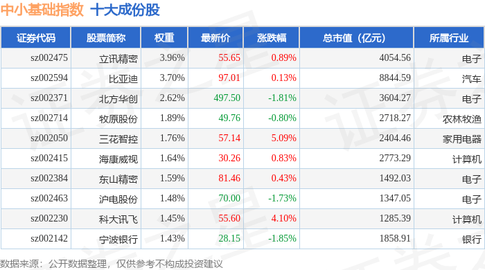 证券之星消息,1月9日,中小基础(399623)指数报收于9506.81点,涨1.46%,成交4238.17亿元,换手率3.51%。当日该指数成份股中,上涨的有299家,美年健康以10.05%的涨幅领涨,下跌的有67家,浙江世宝以5.1%的跌幅领跌。