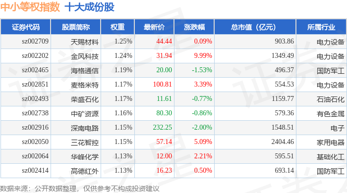 证券之星消息,1月9日,中小等权(399634)指数报收于4606.62点,涨1.41%,成交2238.02亿元,换手率2.97%。当日该指数成份股中,上涨的有79家,光启技术以10.01%的涨幅领涨,下跌的有20家,晶澳科技以2.64%的跌幅领跌。