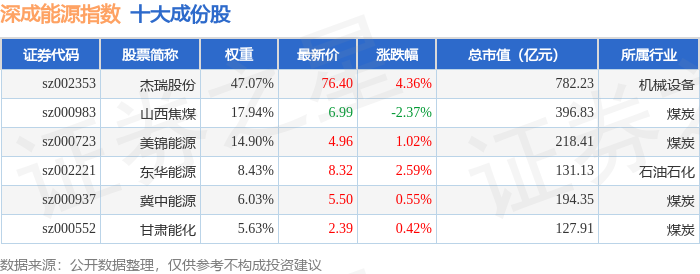 深成能源(399680)指数十大成份股详情如下: