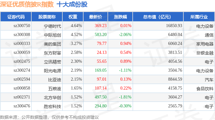 深证优质信披R(470065)指数十大成份股详情如下: