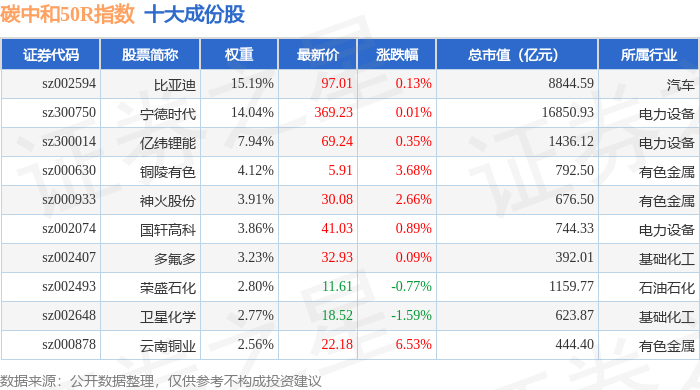 证券之星消息,1月9日,碳中和50R(480021)指数报收于2587.93点,涨0.74%,成交515.11亿元,换手率1.61%。当日该指数成份股中,上涨的有35家,武汉天源以11.84%的涨幅领涨,下跌的有13家,首钢股份以2.97%的跌幅领跌。