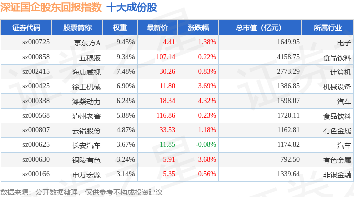 深证国企股东回报(970064)指数十大成份股详情如下:
