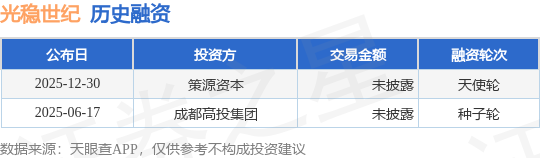 证券之星消息,根据天眼查APP于12月30日公布的信息整理,成都光稳世纪科技有限公司天使轮融资,融资额未披露,参与投资的机构包括策源资本。