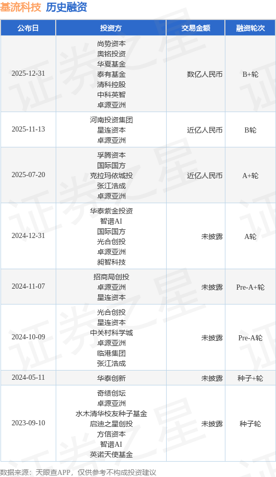 证券之星消息,根据天眼查APP于12月31日公布的信息整理,北京基流科技股份有限公司B+轮融资,融资额数亿人民币,参与投资的机构包括尚势资本,奥铭投资,华夏基金,泰有基金,清科控股,中科英智,卓源亚洲。