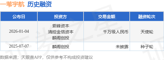 证券之星消息,根据天眼查APP于1月4日公布的信息整理,一苇宇航(北京)科技有限公司天使轮融资,融资额千万级人民币,参与投资的机构包括紫峰资本,清控金信资本,麟阁创投。