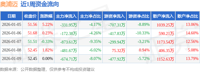 沪深股通持股方面,截止2026年1月9日收盘,奥浦迈沪股通持股数为20.54万股,占流通股比为26.0%。