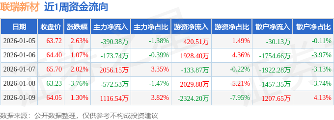 资金流向数据方面,本周联瑞新材主力资金合计净流入2036.04万元,游资资金合计净流入1920.73万元,散户资金合计净流出3956.77万元。本周资金流向一览见下表: