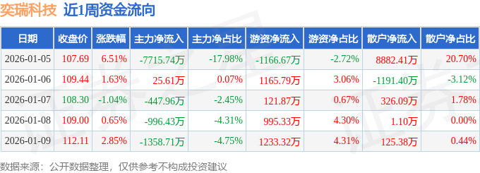 资金流向数据方面,本周奕瑞科技主力资金合计净流出1.05亿元,游资资金合计净流入2349.65万元,散户资金合计净流入8143.59万元。本周资金流向一览见下表:
