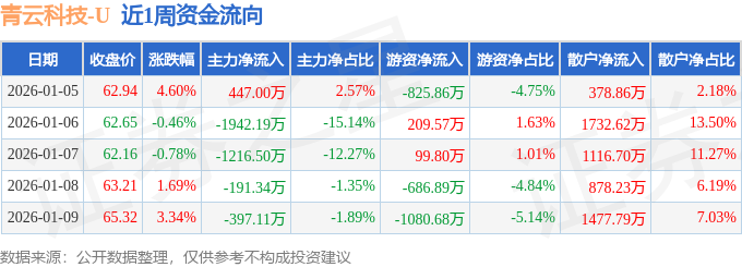 资金流向数据方面,本周青云科技主力资金合计净流出3300.15万元,游资资金合计净流出2284.06万元,散户资金合计净流入5584.2万元。本周资金流向一览见下表: