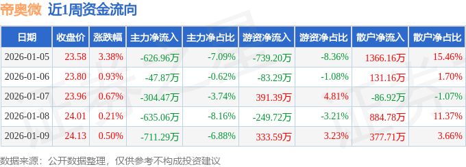 资金流向数据方面,本周帝奥微主力资金合计净流出2325.65万元,游资资金合计净流出347.24万元,散户资金合计净流入2672.89万元。本周资金流向一览见下表: