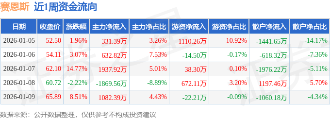 资金流向数据方面,本周赛恩斯主力资金合计净流入2114.94万元,游资资金合计净流入1783.96万元,散户资金合计净流出3898.91万元。本周资金流向一览见下表: