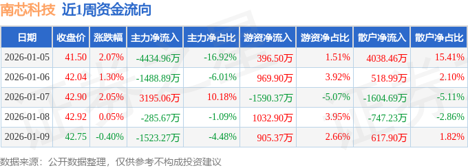 资金流向数据方面,本周南芯科技主力资金合计净流出4537.73万元,游资资金合计净流入1714.3万元,散户资金合计净流入2823.44万元。本周资金流向一览见下表:
