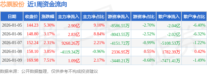 资金流向数据方面,本周芯原股份主力资金合计净流入7.33亿元,游资资金合计净流出2.19亿元,散户资金合计净流出5.14亿元。本周资金流向一览见下表: