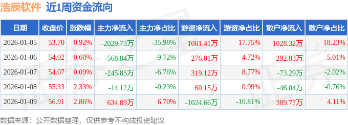 资金流向数据方面,本周浩辰软件主力资金合计净流出2223.63万元,游资资金合计净流入632.04万元,散户资金合计净流入1591.59万元。本周资金流向一览见下表: