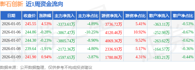 资金流向数据方面,本周影石创新主力资金合计净流出1.48亿元,游资资金合计净流入1.6亿元,散户资金合计净流出1227.49万元。本周资金流向一览见下表: