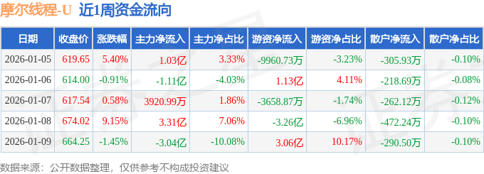资金流向数据方面,本周摩尔线程主力资金合计净流入5848.07万元,游资资金合计净流出4298.6万元,散户资金合计净流出1549.47万元。本周资金流向一览见下表: