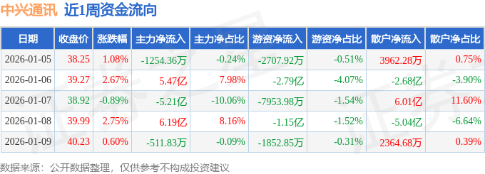 沪深股通持股方面,截止2026年1月9日收盘,中兴通讯深股通持股数为7941.38万股,占流通股比为197.0%。