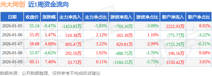 资金流向数据方面,本周光大同创主力资金合计净流入278.35万元,游资资金合计净流出1346.8万元,散户资金合计净流入1068.45万元。本周资金流向一览见下表: