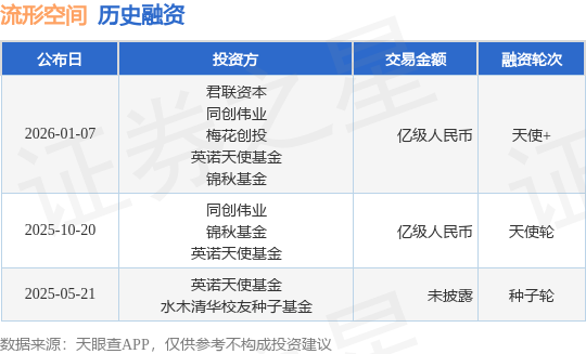 证券之星消息,根据天眼查APP于1月7日公布的信息整理,北京流形空间科技有限公司天使+融资,融资额亿级人民币,参与投资的机构包括君联资本,同创伟业,梅花创投,英诺天使基金,锦秋基金。