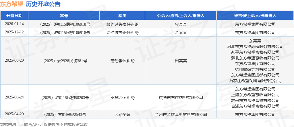 证券之星消息,根据天眼查APP显示,近日公布了一则东方希望集团有限公司作为被告/被上诉人的开庭公告,详细内容如下: