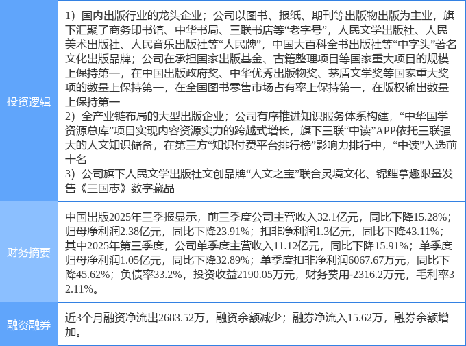 证券之星消息,中国出版1月12日涨停收盘,收盘价7.41元。该股于14点18分涨停,3次打开涨停,截止收盘封单资金为730.42万元,占其流通市值0.05%。