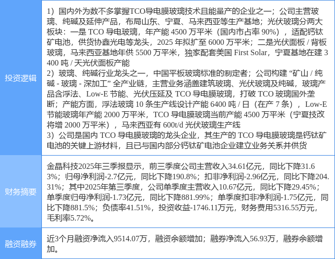 该股为钙钛矿电池,玻璃,光伏概念热股,当日钙钛矿电池概念上涨5.31%,玻璃概念上涨2.01%,光伏概念上涨1.78%。