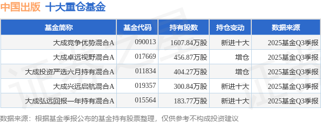 重仓中国出版的公募基金请见下表: