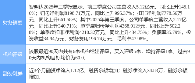 2025年10月29日,太平洋研究员马浩然发布了对智明达的研报《产品订单大幅增长,充分受益下游高景气》,该研报对智明达给出“买入”评级,认为其目标价为60.0元,现价已超分析师预估,涨幅达到0.00%。研报中预计公司2025-2027年的净利润为1.10亿元、1.49亿元、1.87亿元,EPS为0.66元、0.89元、1.11元,对应PE为56倍、41倍、33倍,维持“买入”评级。证券之星数据中心根据近三年发布的研报数据计算,该研报作者对此股的盈利预测准确度为35.28%。