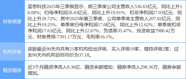 2025年10月30日,浦银国际证券研究员沈岱,黄佳琦发布了对蓝思科技的研报《看好2026年多新品创新周期》,该研报对蓝思科技给出“买入”评级,认为其目标价为34.7元,现价已超分析师预估,涨幅达到22.94%。证券之星数据中心根据近三年发布的研报数据计算,该研报作者对此股的盈利预测准确度为88.97%。