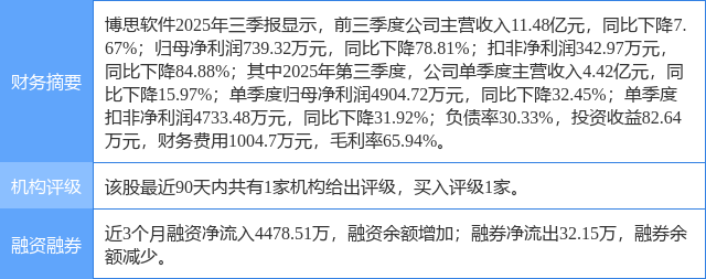 2025年11月2日,民生证券研究员吕伟,丁辰晖发布了对博思软件的研报《2025年三季报点评:业绩短期承压,AI+政务政策有望带动行业回暖》,该研报对博思软件给出“买入”评级。研报中预计公司25-27年归母净利润分别为3.23、3.80、4.33亿元,当前市值对应25/26/27年的PE估值分别为32/27/24倍,考虑到公司在财政IT领域的龙头地位,后续数字政府建设浪潮中公司主营业务有望充分受益,维持“推荐”评级。证券之星数据中心根据近三年发布的研报数据计算,该研报作者对此股的盈利预测准确度为63.69%。
