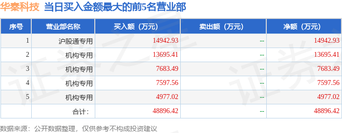 从龙虎榜公布的当日买卖数据来看,机构合计净买入3.4亿元,北向资金合计净卖出5339.03万元。