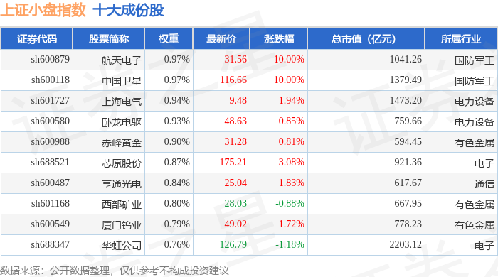 证券之星消息,1月12日,上证小盘(000045)指数报收于6276.13点,涨1.98%,成交4011.34亿元,换手率3.1%。当日该指数成份股中,上涨的有224家,中科星图以20.0%的涨幅领涨,下跌的有84家,源杰科技以5.98%的跌幅领跌。