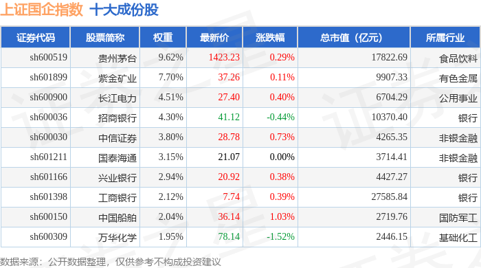 上证国企(000056)指数十大成份股详情如下: