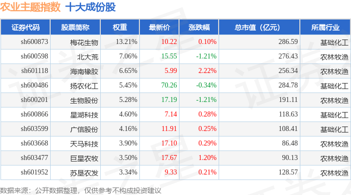 农业主题(000122)指数十大成份股详情如下: