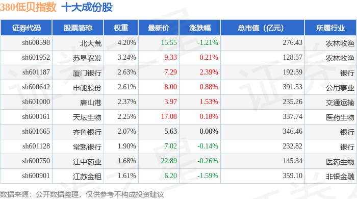 380低贝(000138)指数十大成份股详情如下: