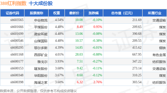 380红利(000150)指数十大成份股详情如下: