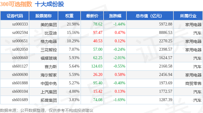 300可选(000911)指数十大成份股详情如下: