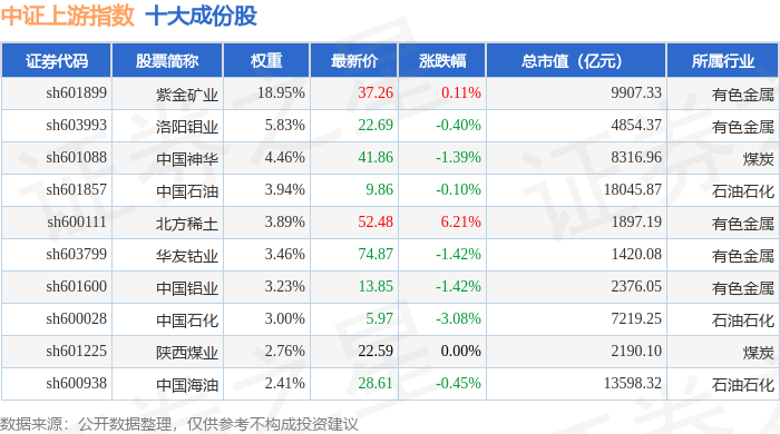 中证上游(000961)指数十大成份股详情如下:
