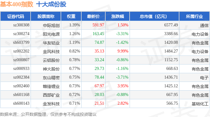 证券之星消息,1月12日,基本400(000966)指数报收于9427.83点,涨1.28%,成交5433.43亿元,换手率2.48%。当日该指数成份股中,上涨的有259家,蓝色光标以20.02%的涨幅领涨,下跌的有117家,鄂尔多斯以6.01%的跌幅领跌。