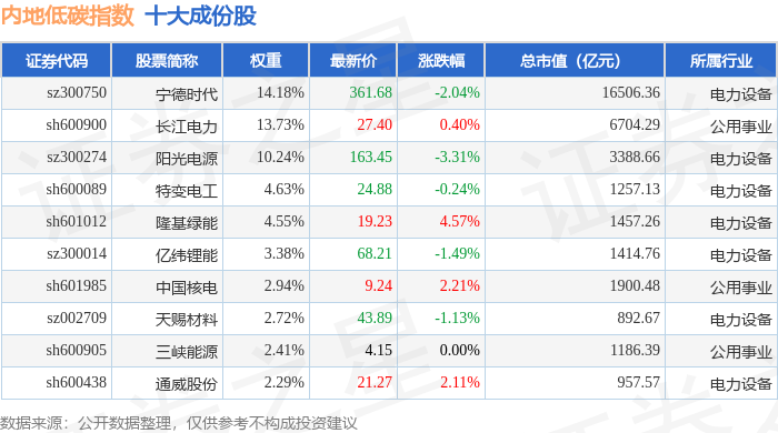 内地低碳(000977)指数十大成份股详情如下: