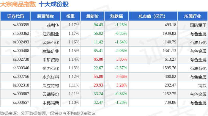 资金流向方面,大宗商品(000979)指数成份股当日主力资金净流出合计42.99亿元,游资资金净流入合计11.21亿元,散户资金净流入合计31.78亿元。成份股资金流向详情见下表: