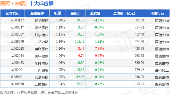 近10日内医药100(000978)指数成份股做了调整,剔除了1只股票。