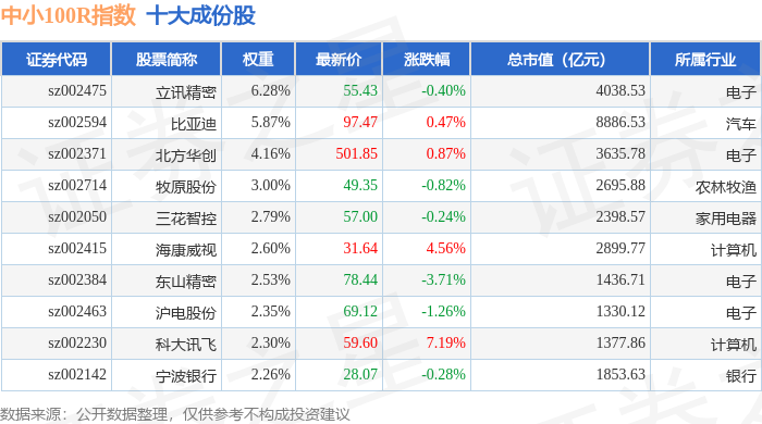 中小100R(399333)指数十大成份股详情如下: