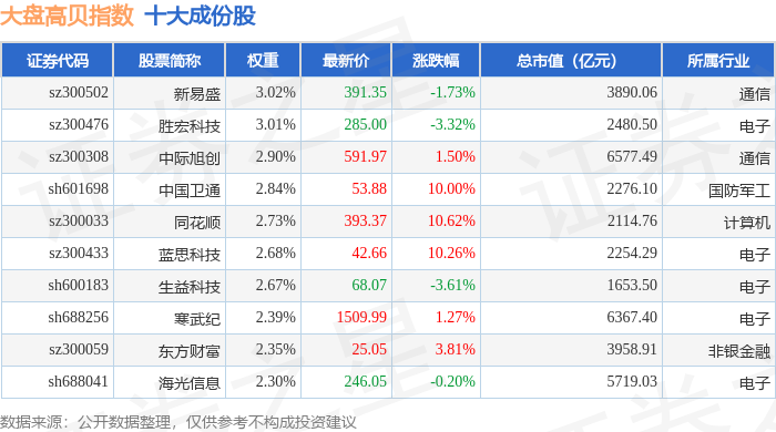 大盘高贝(399405)指数十大成份股详情如下: